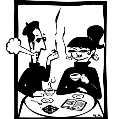 Je droeg een keurig colbertje en hét schrijvers- uniform bij uitstek: zwart. Net zoals je humor…Grappig dat van die kinnenkrabbende cultuurkakkers het altijd moeten hebben van zo ’n artistieke brilmontuur en een kapsel waar Herbert von Karajan nog een puntje kan aan zuigen. Zelfs je gesticulaties hadden iets weg van een dilettante dirigent. Je bood me een glaasje “vitte vijn” en een portie poëtisch seksisme aan waar zelfs Michel Houellebecq niet kan aan tippen. Jij bestelde “een doorrookte turf- whisky” en bij de tafel naast ons, een sigaret. Ongevraagd deed je me de gouden regels van de retorica uit de doeken. En dat met een danig aantal decibels opdat de hele tafel je goed zou kunnen horen. Desalniettemin wilde ik je pseudo- intellectuele prietpraat over Plato, Hugo Claus én uiteraard jezelf nog een kans geven. Helaas mondde dat bij jou uit in een megalomane monoloog en bij mij in ergernis en gênant geknikkebol. Jammer dat je je baret en bongo ’s was vergeten om die geforceerde beatnik ‘slang’ kracht bij te zetten. Dan was ik misschien wakker gebleven. Ik heb dus eigenlijk totaal niet geluisterd wanneer je me je uitgesponnen visie op ‘khunst’ en de intrinsieke waarde van literatuur uit de doeken deed. Al die moeite om je eruditie ten toon te spreiden heeft dus helaas geen zoden aan de dijk gebracht. Dostojevski kan om eerlijk te zijn mijn kloten kussen. Het enige wat ik van jou zal onthouden is dat je nog steeds vrijgezel bent omdat je jezelf zo graag hoort praten. Dat de façade die je vandaag weer eens hebt opgetrokken dringend aan renovatie toe is. En had je ook maar een minuutje je mond gehouden, dan had jij van mij geweten dat ik ook satire schreef. Sorry…