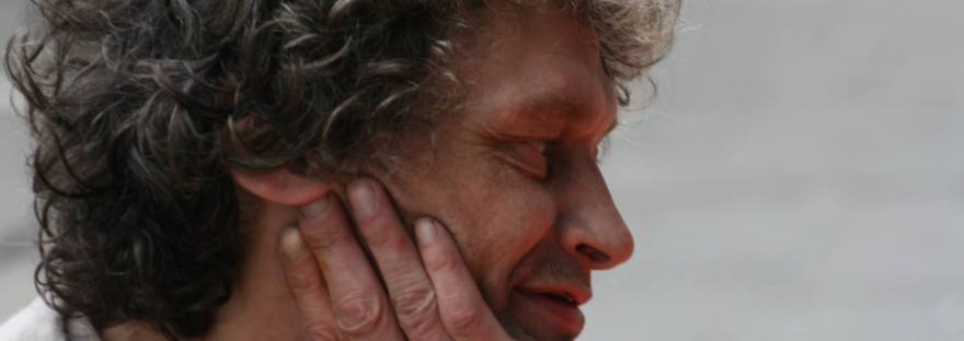 Iedere keer meen ik je te zien staan op een hoek, aan een bushalte of voor een winkelraam. Maar dan verklapt mijn geheugen me weer dat je nu al bijna een jaar dood bent. En toch… Als ik over het pleintje met de bomen fiets of afstap van bus 3, zie ik jou weer, Paul, jij verwaaide krullenbol. Dan zie ik je weer zitten onder die ene esp, op terras van een Turks café. Na de laatste slok troost hijs je je lijf, moe en zwaar, uit de rieten tuinstoel en sjouw je terug die plastic zak miserie over je schouder mee; gevuld met glazen boterhammen en een goedkoop diner dat je kocht met statiegeld. En dan verdwijn je weer, sloom en gelaten, in een van de straten van m’n jeugd, kijkt nog eens knipogend achterom met een blik zonder goesting. De weinige tanden die je nog bezit blinken dan even in die diezelfde cynische glimlach die ook míjn mond soms omkadert en smaalt om de grauwe gekheid van een bitter leven. Weg.