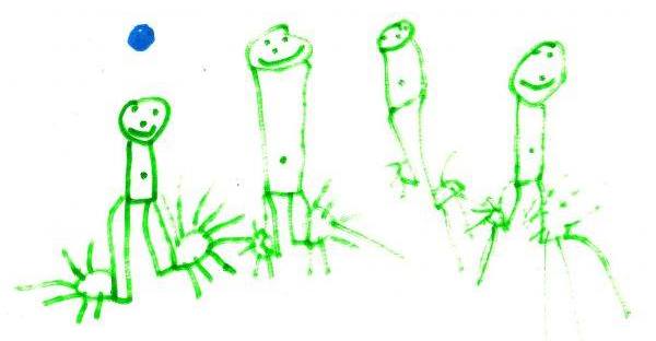 Hans Teeuwen had er al iets over te zeggen maar dat heb ík ook: kinderen en hun knutselwerkjes, het is dubbel. Zijn ‘draak’ – zonder kop en zonder staart – lijkt op een regenworm, zijn ‘sabeltandtijger’ op een verkeerd gemonteerde ikea-tafel en papa op een piemel. Maar dat wil je niet zeggen. Je wil het kind gelukkig maken, en dat kan énkel middels het obligatoire ‘oh wat mooi, zeg!’, een bemoedigende bolwassing en een welverdiende zoen. ‘Maak er nog maar één, we kunnen er niet genoeg van hebben…’ lieg je dan.